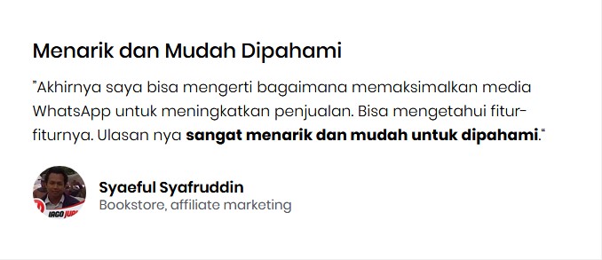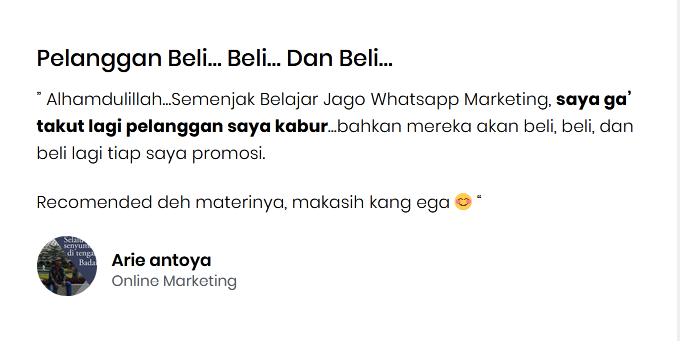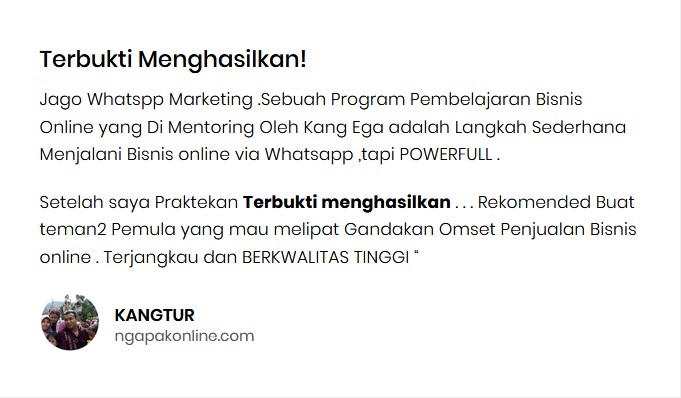 Lagian, jika Anda belajar secara otodidak mengenai whatsapp marketing, berapa waktu dan uang yang anda keluarkan untuk setiap Trial yang Eror yang anda alami, lebih baik belajar dari materi yang sudah saya siapkan karena sudah saya gunakan selama 2 tahun terakhir dan terbukti menghasilkan