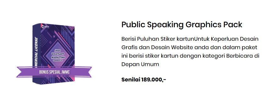 Jujur, sebelumnya Saya ingin membuka materi pembelajarn ini dengan harga Rp 599.000, tapi Saya paham.. karena niat Saya ingin membantu kawan-kawan pengusaha pemula, jadi Anda hanya perlu investasi Rp 299.000 saja untuk bisa mendapatkan Jago Whatsapp Marketing Commercial ini.